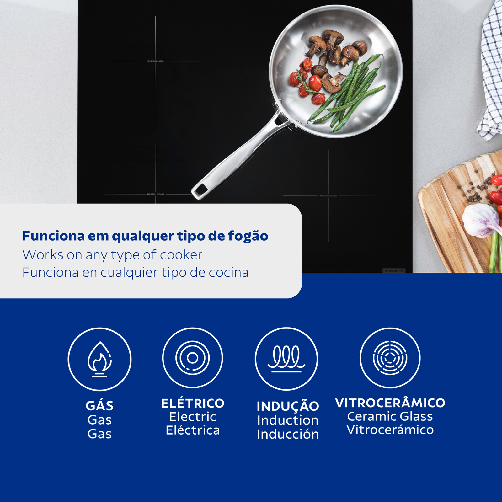 Tramontina Grano 30 cm 3,4 L Stainless Steel Frying Pan with Tri-Ply Body and Long Handle